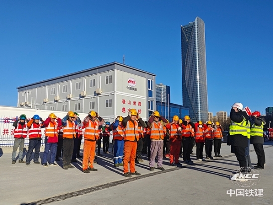新建津濰高鐵濱海站項目組織安全早班會(楊薇燕 攝)