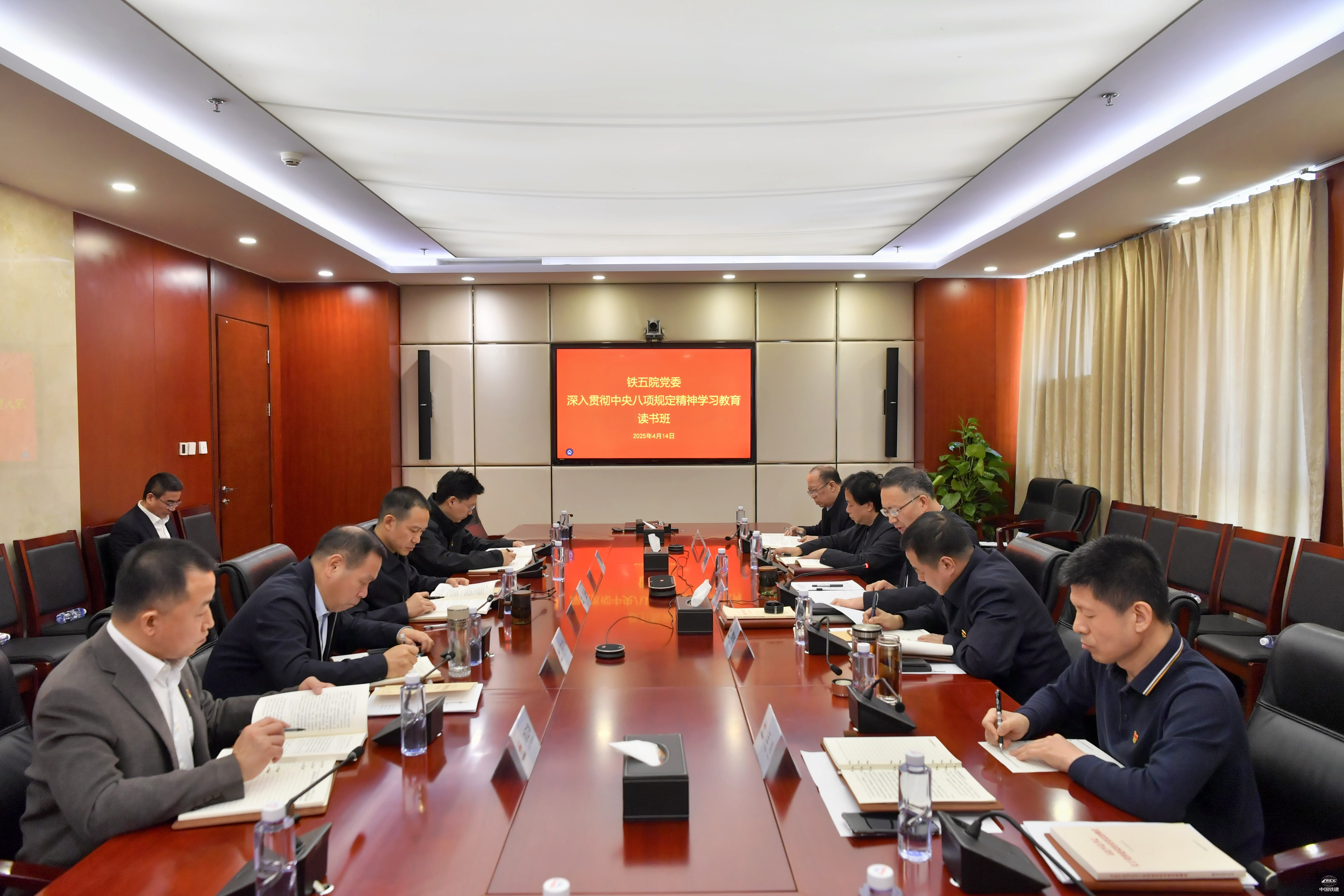 4月14日,鐵五院黨委舉行深入貫徹中央八項規定精神學習教育讀書班暨2025年第5次黨委理論學習中心組(擴大)學習會議,深入學習領悟習近平總書記關于加強黨的作風建設的重要論述、中央八項規定及其實施細則精神,并圍繞學習內容開展研討。鐵五院黨委書記、董事長陳虎主持會議,帶頭領學研討并講話。鐵五院領導班子成員圍繞主題作研討發言。